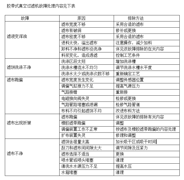 帶式過濾機(jī)操作規(guī)程及常見故障排除
