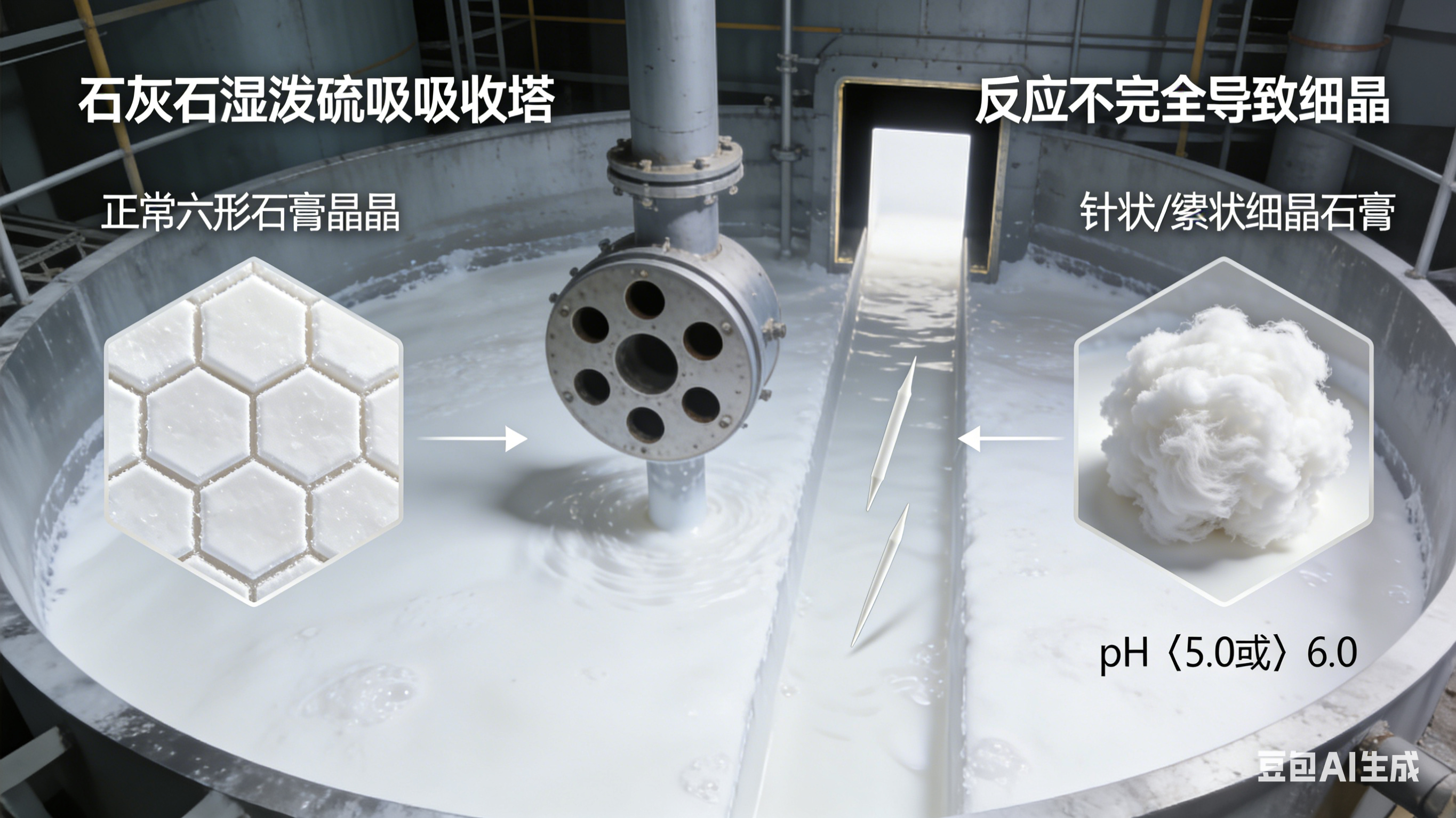 同時,吸收塔內 pH 值控制不當(過低<5.0 或過高>6.0),會抑制石膏晶體正常生長,產生大量針狀或絮狀細晶,進一步加劇脫水困難。
